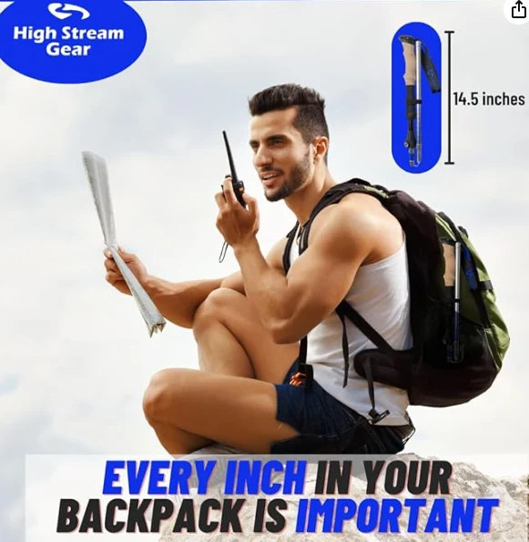 Hikeers için yürüyüş direkleri 37 cm'ye (14.5 inç) aşağı iner ve her biri sadece 10 ons ağırlığındadır ve size temel ve kişisel ekipmanlarınız için yer bırakır.