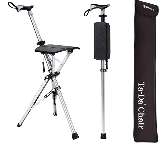 Yaşlı erkekler alpenstock trekking kamışı, dinlenme ve destek için bir yürüyüş çubuğu. Bir yürüyüş çubuğunu anında bir sandalyeye dönüştüren bu tasarım, bir an önce yorgun bacaklar ve dizler için dinlenme sunar.