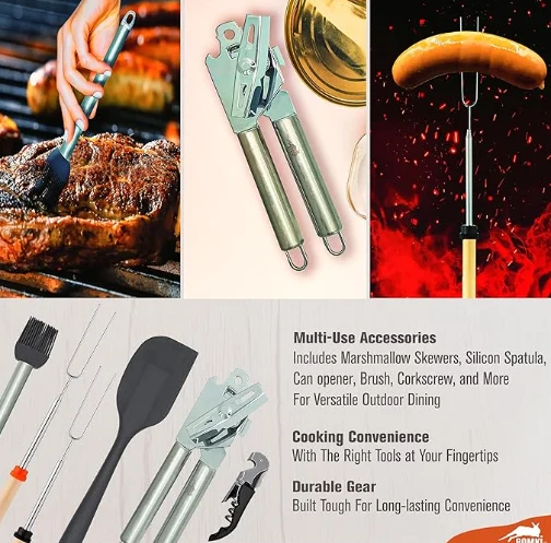 Açık Kamp Tencere Depolama Çantası Bu 35 PC kamp pişirme eşyaları seti, açık hava pişirme ihtiyaçlarınız için eksiksiz bir çözümdür. Bir kamp mutfak seti ve kamp kapları pişirme seti içerir, hepsi ekstra bölmeler ve iki arka cepli özel bir çantada düzgün bir şekilde paketlenir. Set, tüm kamp pişirme temellerinize hitap etmek için tasarlanmıştır, bu da kamp ekipmanınıza vazgeçilmez bir katkı sağlar.