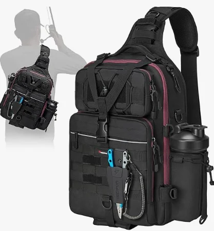 Çıkarılabilir omuz askıları, bu torbayı bir askı omuz torbası, sırt çantası, el çantası, göğüs torbası, olta takımı çantası veya seyahat çantası olarak kullanmayı kolaylaştırır. Çubuklarınızı tutmak için iki çubuk kayışı ile, ana kayış uzunluğu 51.2 '' 'ye kadar uzatılabilirken, ilişkilendirme kayışı 36.2' 'ye kadar uzatılabilir' '