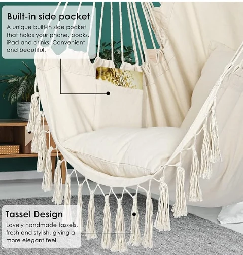 Dikiş asılı paraşüt hamakları, kullanıcıların mükemmel yumuşaklık, dayanıklılık ve konforla yumuşak sünger rahatlığının tadını çıkarmasını sağlar. Yani yetişkinler, çocuklar veya evcil hayvanlar için en iyi dinlenme yeri