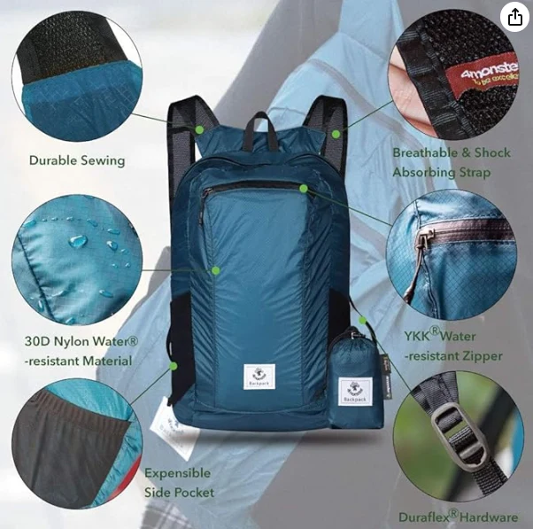 Su geçirmez hafif yürüyüş sırt çantası, bu hafif yürüyüş gündüzü suya dayanıklı malzeme ve fermuardan yapılmıştır. Yağmur suyunun telefonu veya nakit ve sırt çantasındaki diğer ürünleri ıslatmasını etkili bir şekilde önleyin.